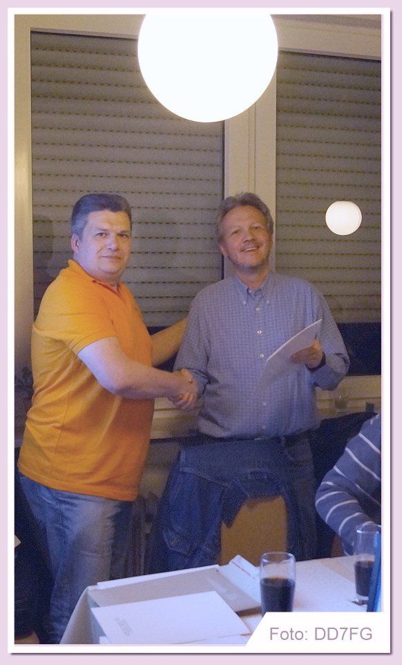 Nach der einstimmigen Entlastung des bisherigen Vorstandes wurde der Neue gewählt. Der Wahlausschuss bestehend aus René und Kurt, DL4ZAG, begann seine Arbeit und konnte nach allen Wahlgängen das Ergebnis bekannt geben und so wurden wiedergewählt: