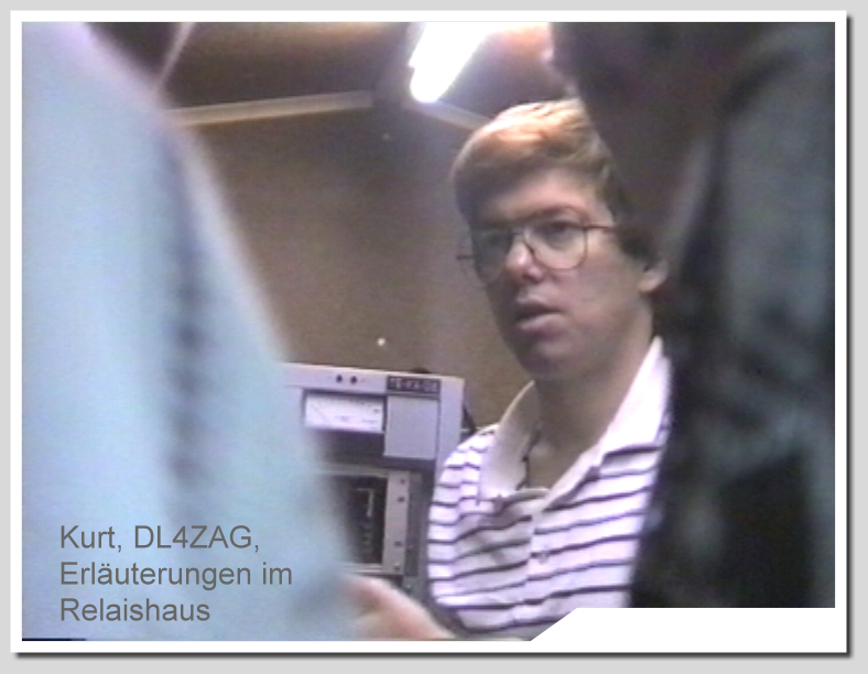 Anschließend hatten wir Gelegenheit eine Ausstellung im Heimatmuseum von Roßdorf unter der Führung von Heiner (DL3ZE) zu besichtigen. Der nächste Tag war ebenfalls angefüllt mit Terminen. Er begann mit einer Besichtigung der Amateurfunk- Relaisstation Böllstein (DB0VB). Kurt und Heiner erklärten den Aufbau und die Eigenschaften der Anlage. Diese war für unsere Freunde nicht ganz unbekannt, denn Heiner hatte während unseres Englandbesuches seinen Super-8- Tonfilm über die Entstehungsgeschichte des Relais´ vorführen könne. Da Peter (G6TBL) aus familiären Gründen früher nach Hause mußte, brachte Kurt ihn anschließend zum Busbahnhof nach Frankfurt/M.