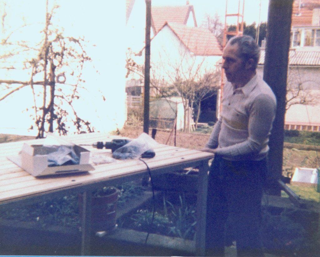 Frühjahr 1978 Hier beginnt Heiner DL3ZE in seinem Garten in Roßdorf mit dem Bau des ersten Relais-Häuschens für DB0VB UKW-Relais Böllstein